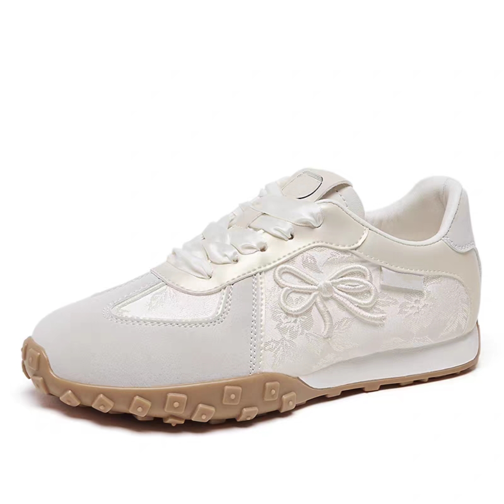 + Free ShippingThese cream white low-top sneakers blend cute details with timeless style. Crafted from lightweight canvas, they feature a charming embroidered bow on the side (plus subtle branding) for a gentle, stylish look. The flexible gum sole offers cushioning and grip, making them practical for everyday use—whether you’re running errands or meeting friends. A versatile pick that balances sweetness and casual ease, perfect for women who love delicate, retro-inspired footwear.